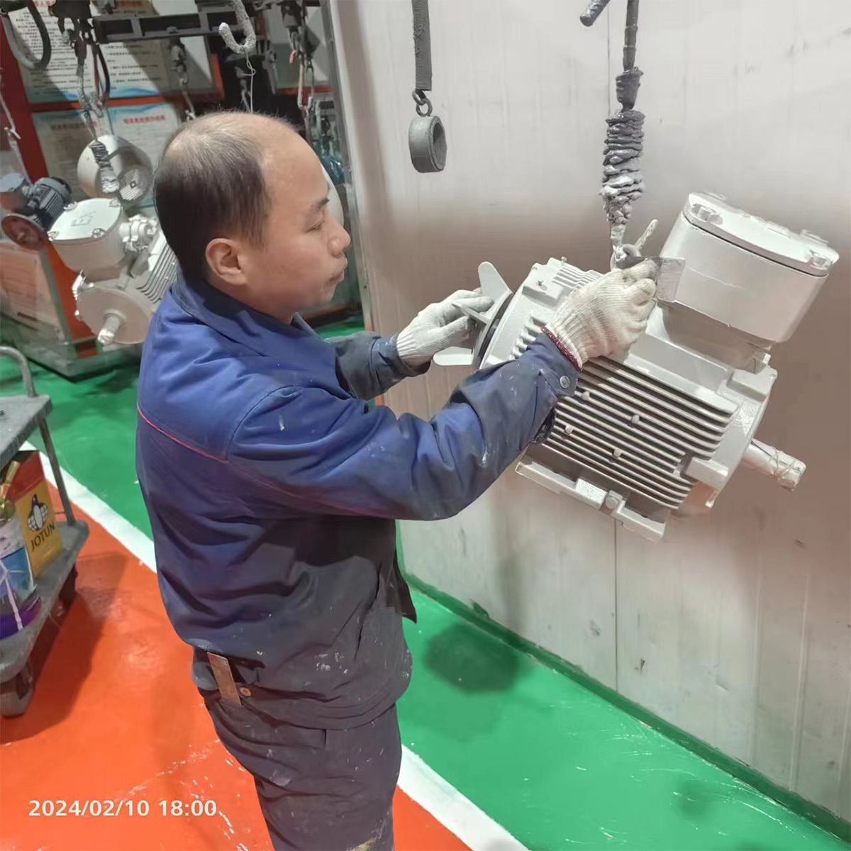 喷包车间喷漆工张永刚、孟宪武、刘安华、郭凤臣等职工,,,,,,,,在春节时代,,,,,,,,放弃与家人的团圆,,,,,,,,坚守、斗争在各自岗位上,,,,,,,,抢制项目电机喷漆进度,,,,,,,,用行动诠释着责任和使命。。。。。
