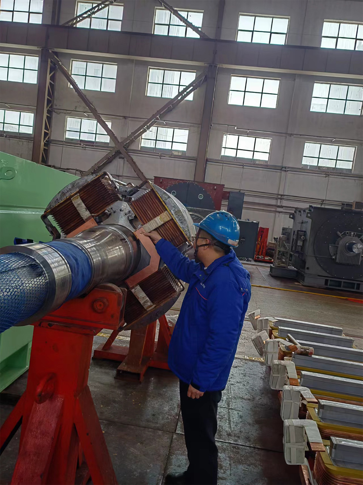 行远自迩,,,,,,,,笃行不怠。。。。。设计部同步机室王洪彬起劲配合正压外壳型无刷励磁同步电念头TZYW5700-4/1730新产品制造的要害工序事情,,,,,,,,为高质量完成新产品交付提供了强有力的包管。。。。。
